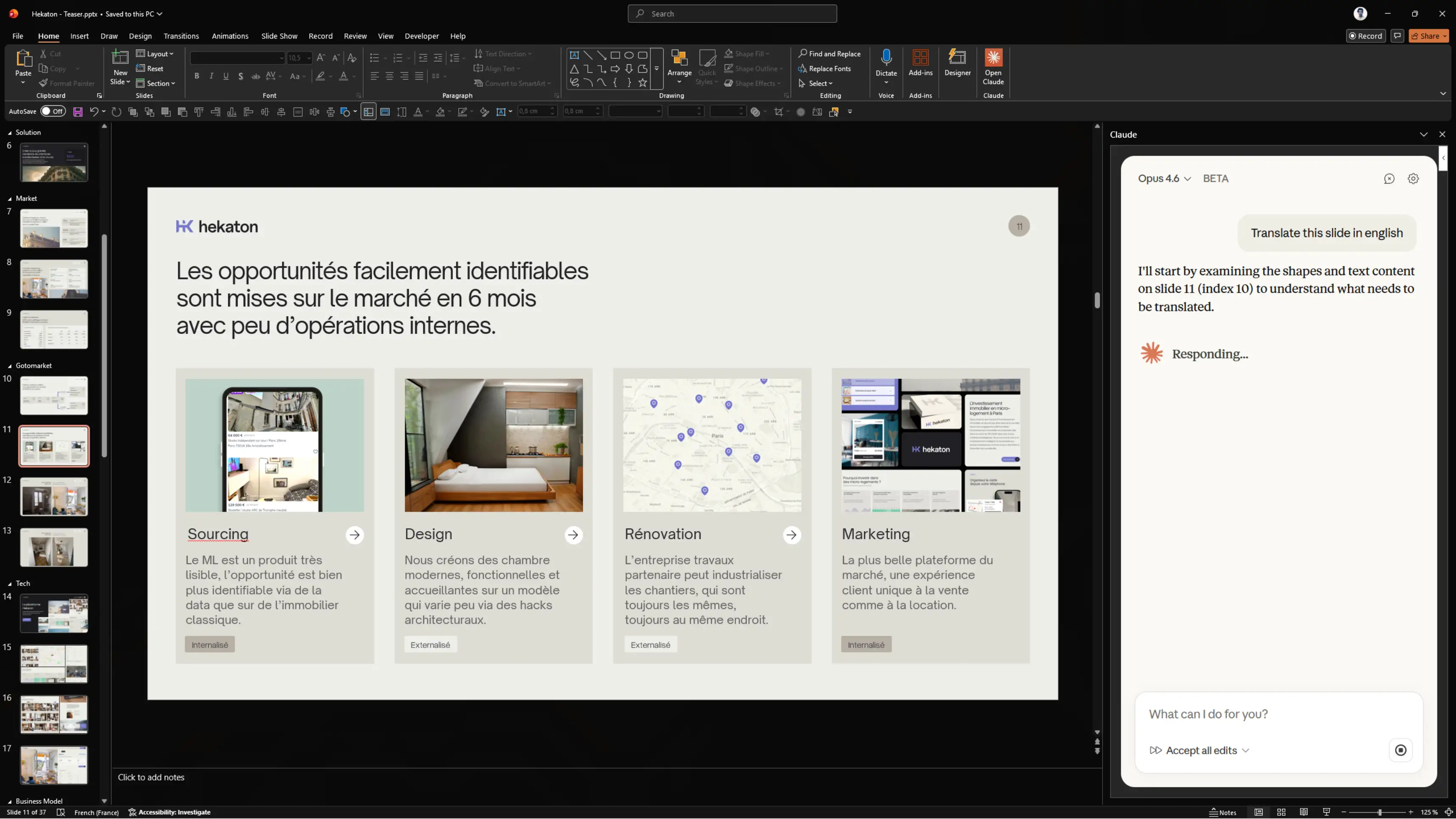 Translate this entire presentation from French to English. Keep the same structure, adapt any culturally specific references, and ensure the tone is appropriate for a US corporate audience.